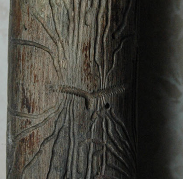 Prägungen: Direktprägung der Brutgänge des Ips Typographus auf handgeschöpftem Papier aus Fichte