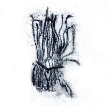 Prägungen: Direktprägung der Brutgänge des Ips Typographus auf handgeschöpftem Papier aus Fichte